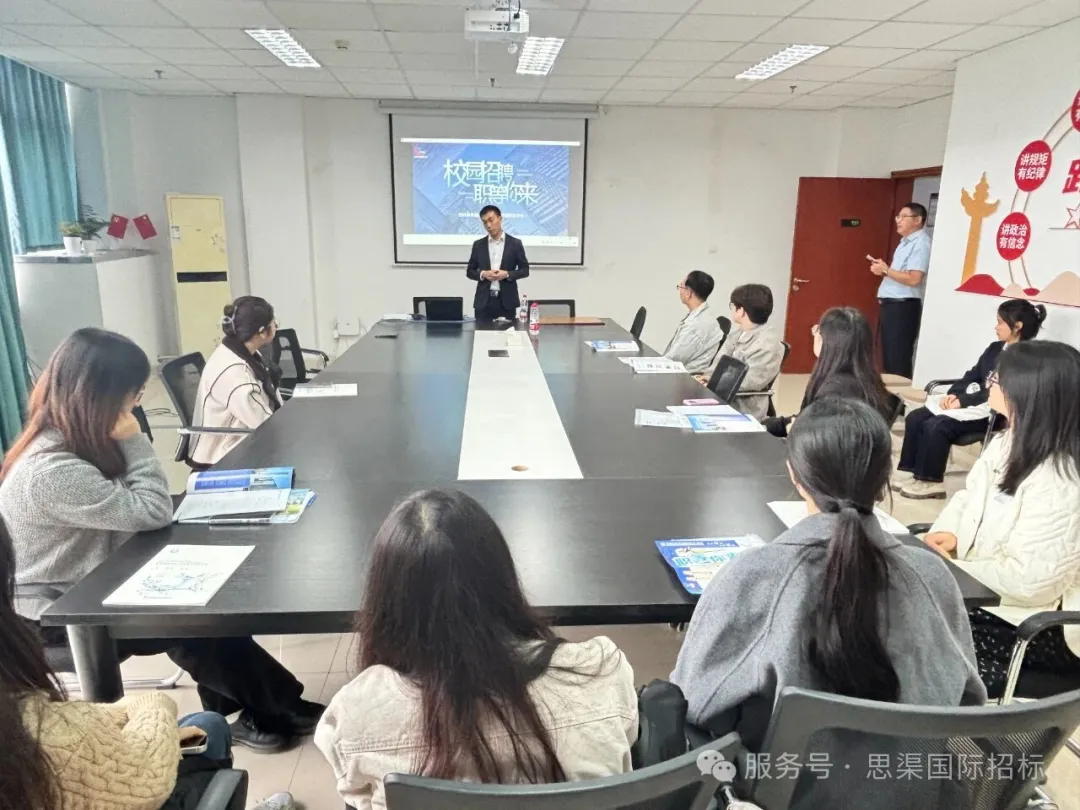 签约仪式后,思渠**开展专场宣讲,由公司总经理伍毅结合企业发展历程、核心业务板块及职业发展路径,向在场毕业生系统介绍行业前景与岗位需求。宣讲过程中,针对毕业生关心的薪酬福利、晋升体系、实习培养计划等问题,逐一细致解答,现场互动氛围热烈。宣讲结束后,公司随即开启“一对一面试交流”环节,与意向毕业生深入沟通,从专业能力、职业规划、实践经历等多维度进行综合评估,部分表现优异的毕业生当场获得进入复试的资格。