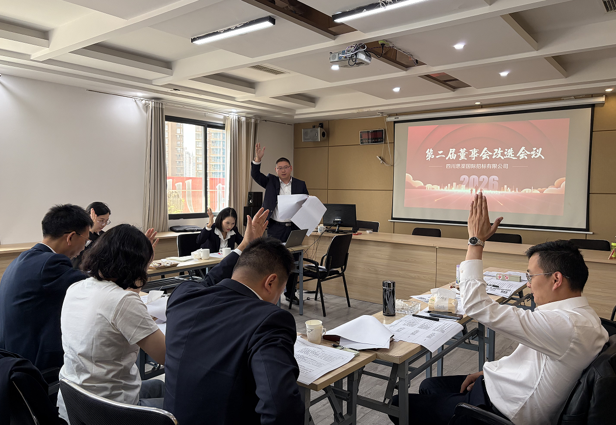 为进一步健全公司法人治理结构,优化董事会队伍建设,提升科学决策与经营管理水平,为公司“四五”规划开局之年提供坚强组织保障,根据《公司法》《公司章程》及相关工作要求,近日,四川思渠国 际招标有限公司(以下简称“思渠国 际”)以规范程序、严明纪律、公正透明为原则,顺利完成董事会换届改选。