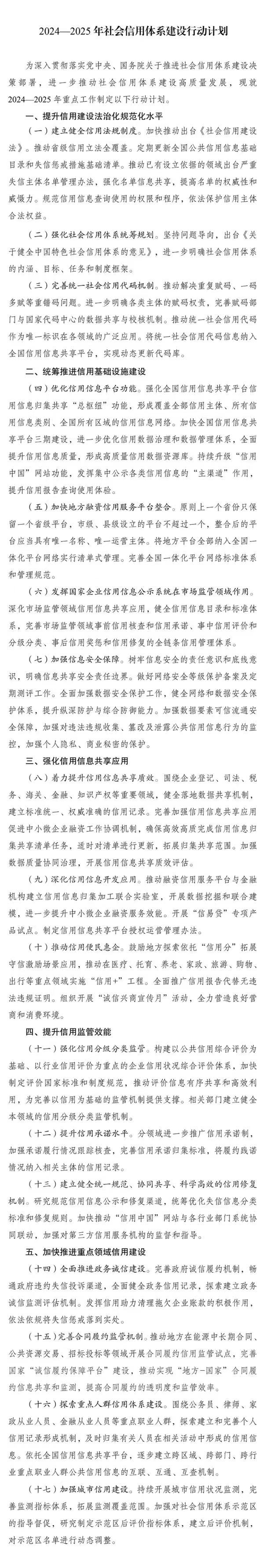 国家发展改革委办公厅关于印发《2024—2025年社会信用体系建设行动计划》的通知